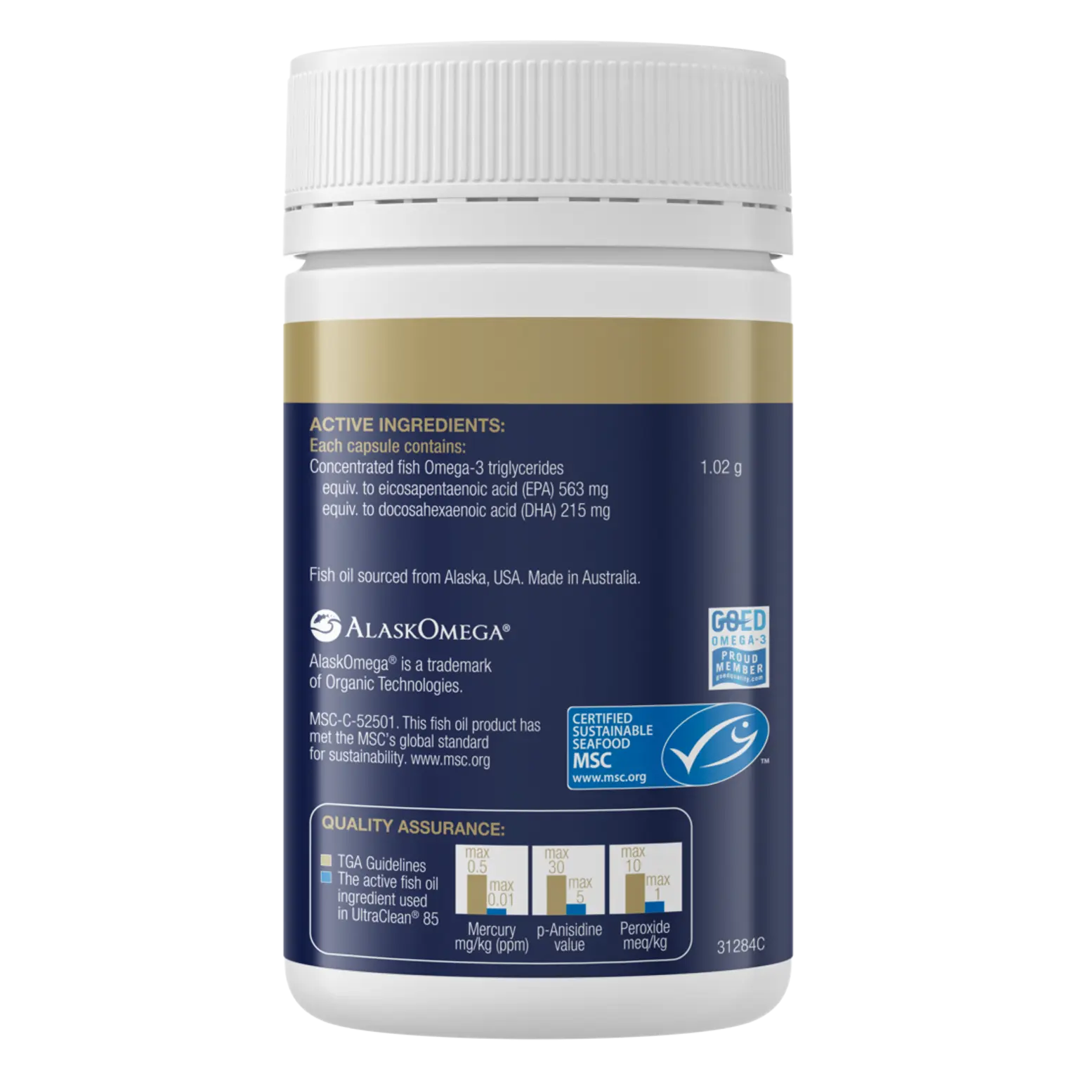 UltraClean® 85 delivers 85% concentrated omega-3 fatty acids, sourced from certified sustainable wild fish in a soft gel capsule. This fish oil product has met GOEDs quality standards for freshness. Omega-3 fatty acids support brain and cognitive function, help to maintain cardiovascular system health and support healthy mood balance. They are also anti-inflammatory and can relieve symptoms of mild osteoarthritis, including promoting healthy joint function and relieving mild joint pain.